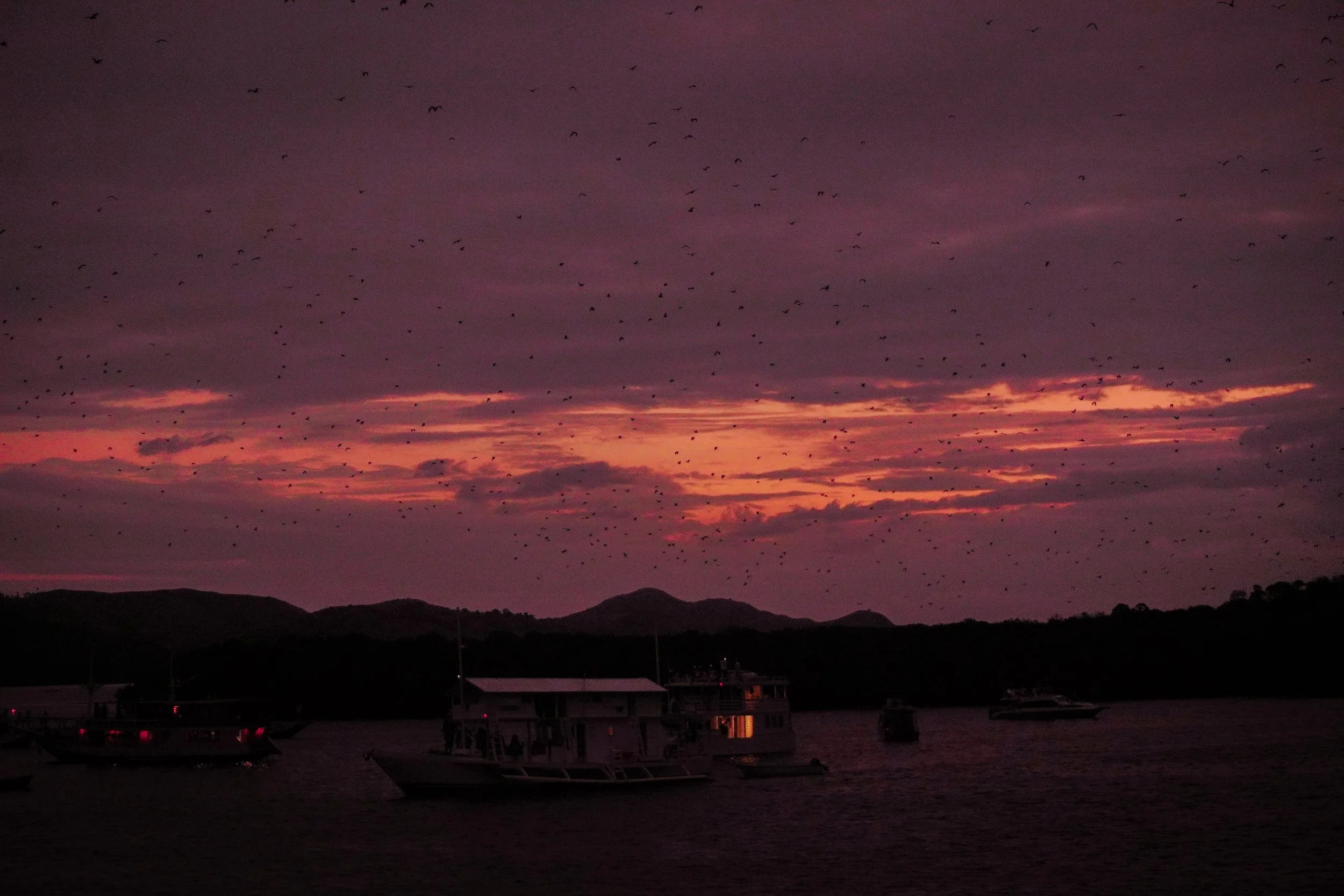 After Komodo Island, the last stop of the day was Kalong Island. This is best visited shortly before sunset, when hundreds or even thousands of flying foxes rise from the mangroves and head out into the evening sky in search of food. Against a horizon painted in pink, orange and red, the scene felt almost cinematic. The island is also known as Fruit Bat Island. That evening, we ended the day with a small farewell party on the boat while sailing north.