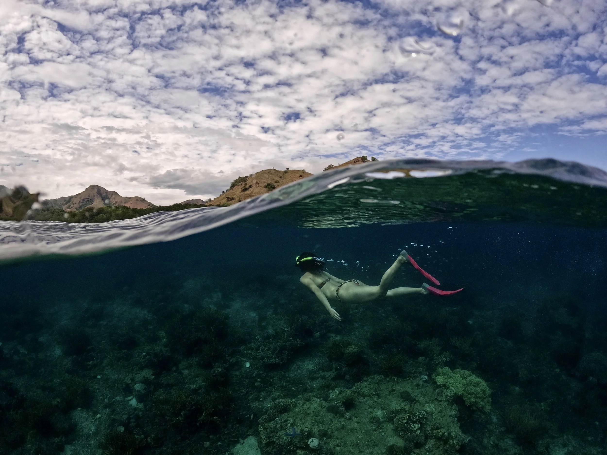 At dawn on the final morning, we woke up near Kelor Island. After breakfast, another short climb awaited us, this time only around ten minutes to reach the top. The small island is surrounded by bright turquoise water, and near the shore we even spotted a few baby sharks hunting in the shallows. Around Moringa Beach, local handmade products can also be purchased from the islanders. Our final stop was nearby Manjarite, where we jumped into the water one last time. At last, the sun came out, and suddenly the marine world revealed itself in completely different colours. It was the perfect ending to an intense and unforgettable three-day adventure.