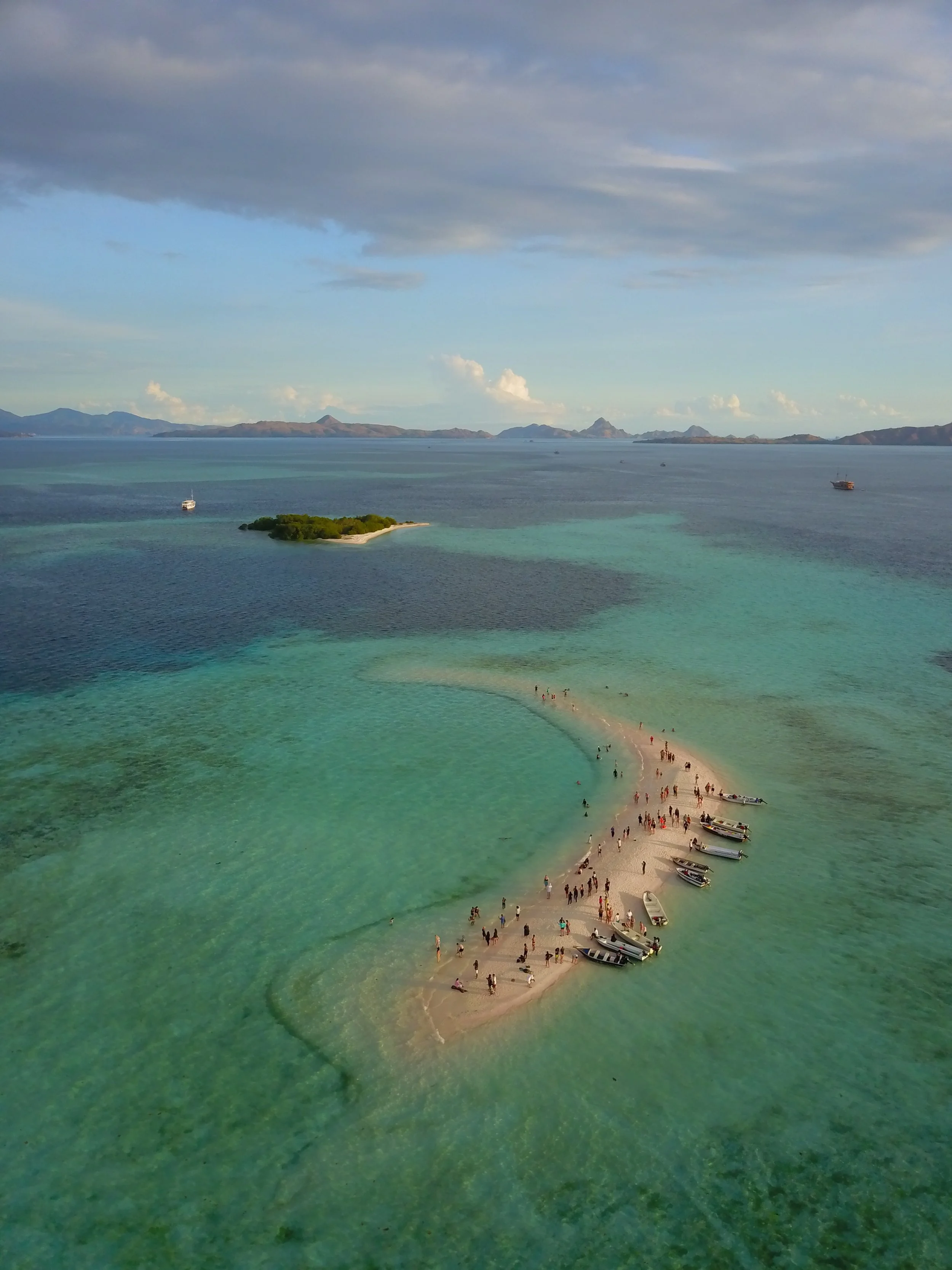 This crescent-shaped sandbank only appears properly at low tide and creates the surreal feeling of standing in the middle of the sea. After swimming back to the boat, a generous dinner and a quiet evening awaited us, while the boat continued towards Padar Island overnight.
