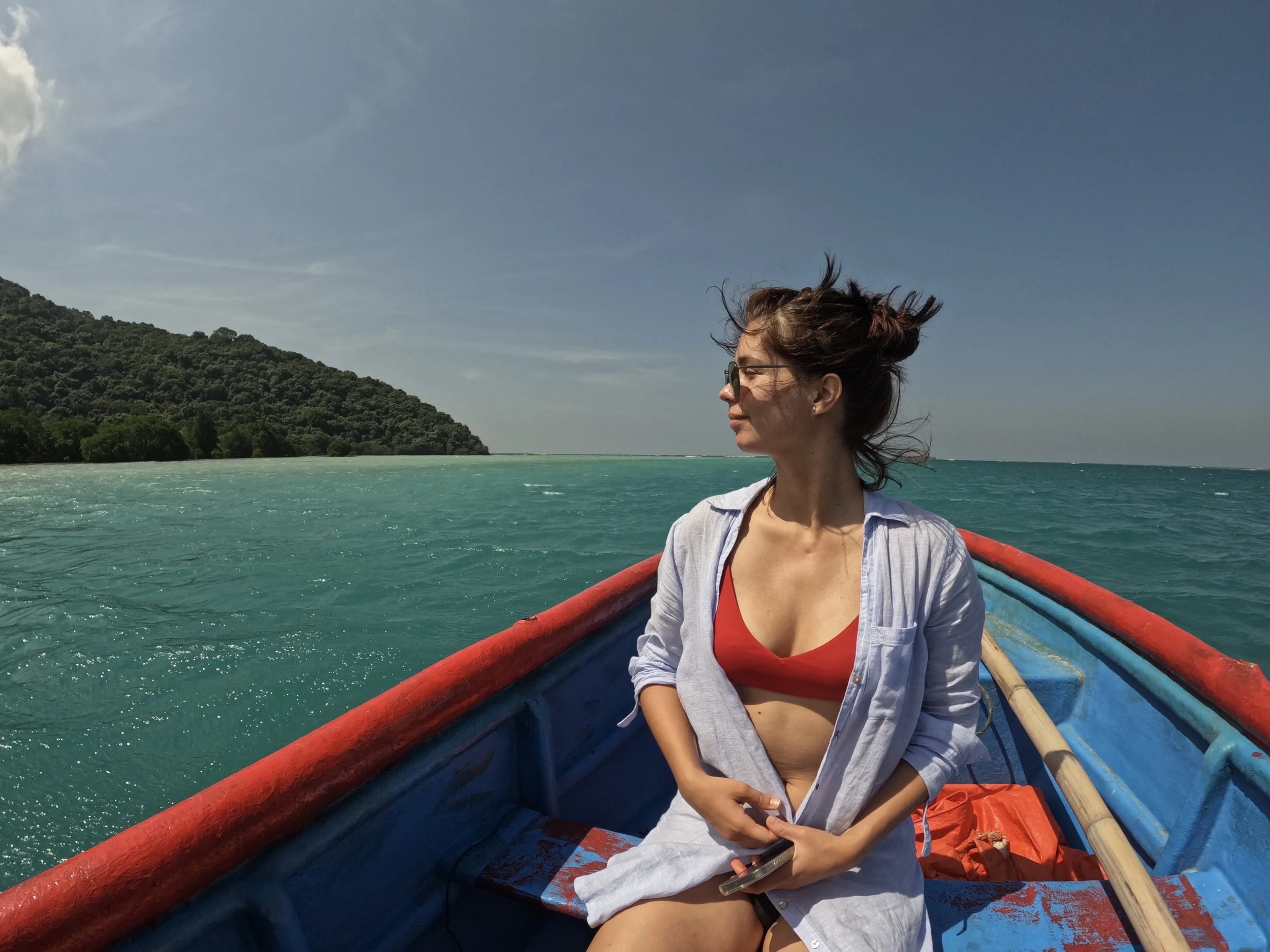 We spent the second half of the day near a larger island, close to Melinda Beach. We did not go ashore there, but instead snorkeled along the coral reefs while slowly heading north. The highlight of the trip came during golden hour, when everything under the water turned warm and glowing. Marine life was especially active at that time of day. We fed the fish and tried to absorb every single moment. Back on the boat, we ate fresh fruit, watched the sunset, and slowly made our way home.